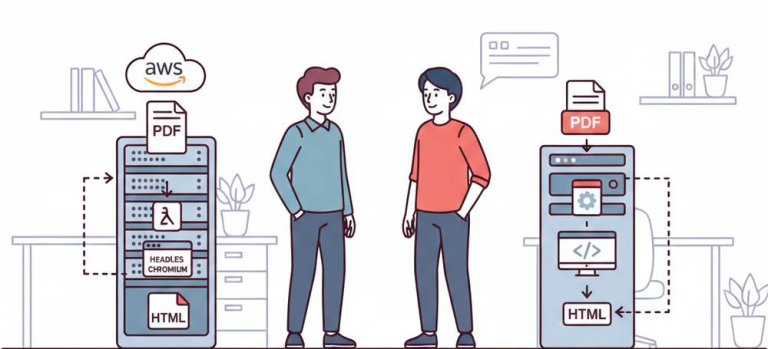 A practical guide for HTML to PDF conversion using serverless architecture-from running headless browsers in Lambda to using lightweight PDF generation API services for production workloads.