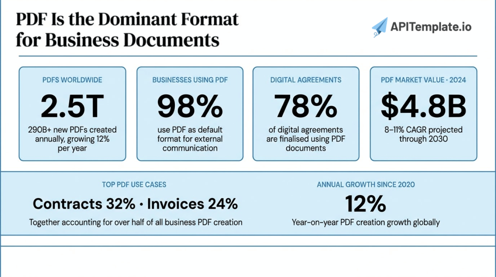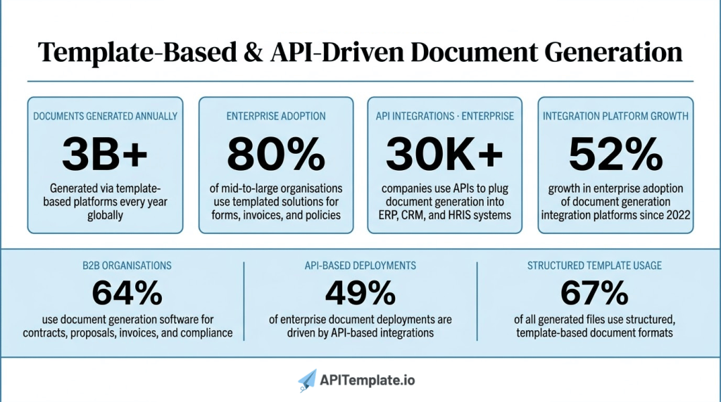 The way documents are actually built has shifted. Template-based PDF generation APIs have replaced manual creation at scale, and the adoption numbers reflect exactly how far that shift has gone.