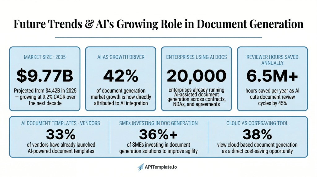 The numbers from previous sections show where document automation is today. This section shows where it’s heading. And the trajectory is hard to ignore.
