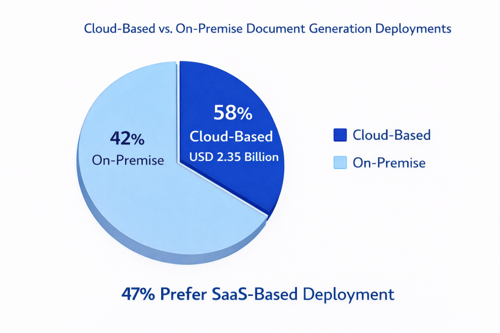 – Cloud-based document generation software already accounts for 58% of the total market, valued at USD 2.35 billion in 2025. Around 47% of enterprises prefer SaaS-based deployment over on-premise solutions.