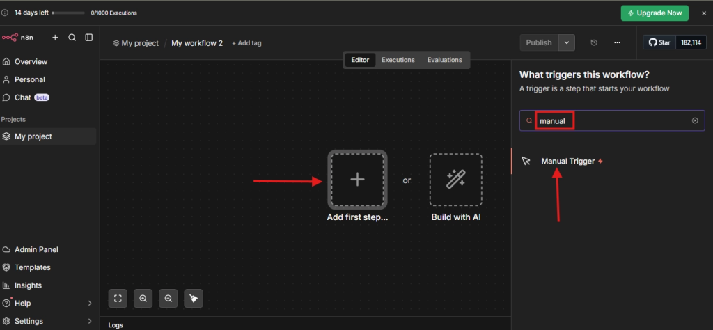 - n8n Cloud – Sign up at n8n and you’ll get a hosted editor ready to use.